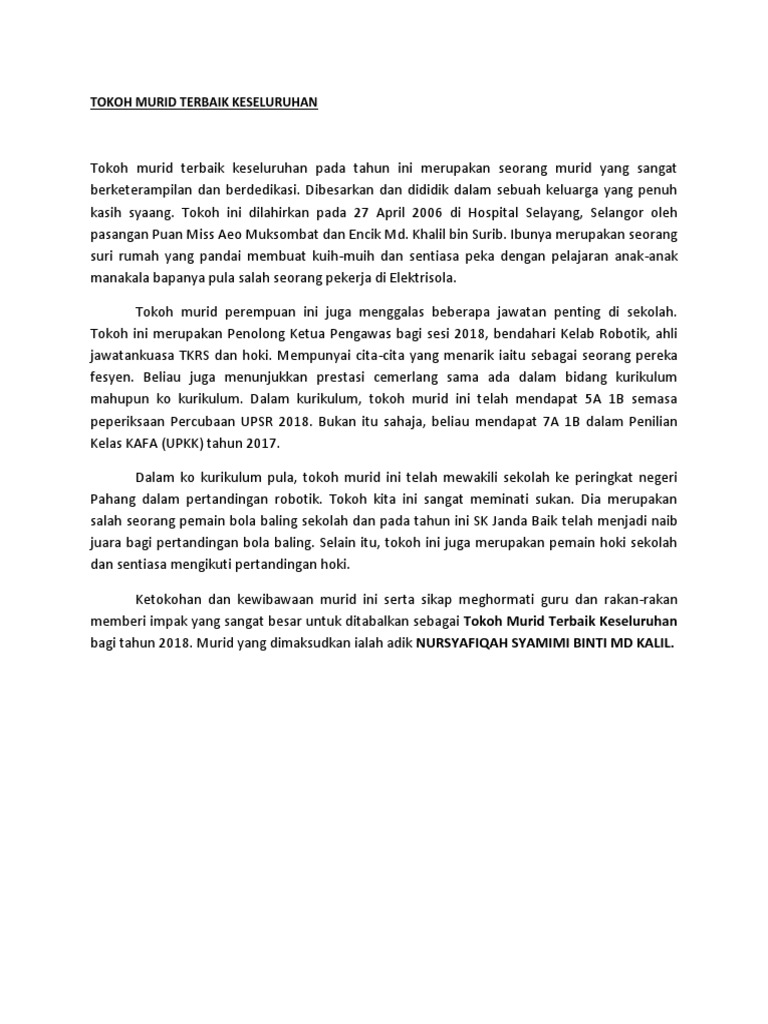 Biodata Tokoh Murid from imgv2-2-f.scribdassets.com Anugerah cendekia tokoh murid 2017. Search results for biodata format for marriage in marathi via www.calendariu.com. Contoh biodata murid linus kerkosa. Dibesarkan dan dididik dalam sebuah keluarga yang penuh kasih sayang. Contoh biodata diri untuk melamar kerja contoh biodata pelajar atau siswa Cara membuat cv taaruf yang bagus dan menarik via ardiyansyah.com. Biodata murid merujuk pada informasi mengenai murid. Contoh borang biodata murid diri pelajar sekolah rendah.